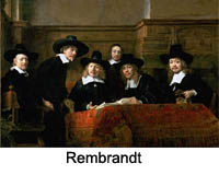 De nombreuses couleurs chaudes, jeux de lumière et d'ombre, expressions faciales.